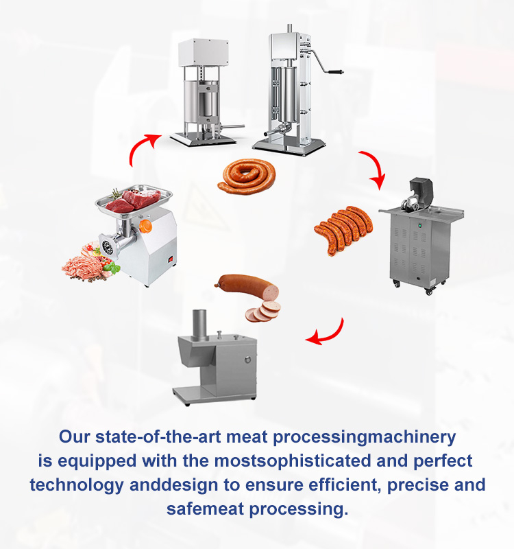 Pabrik pengolahan daging merupakan salah satu tempat yang paling banyak digunakan untuk mesin pengolah daging.Di sini, mesin pengolah daging seperti gergaji tulang, pengiris, dan penggiling daging banyak digunakan dalam penyembelihan, pretreatment, pemotongan, pemasakan, pengawetan, penggorengan, pengeringan, dll. Pabrik pengolahan daging juga dapat menghasilkan berbagai produk daging, seperti ham sosis, bakso, abon, irisan daging, dll, untuk memenuhi permintaan pasar.